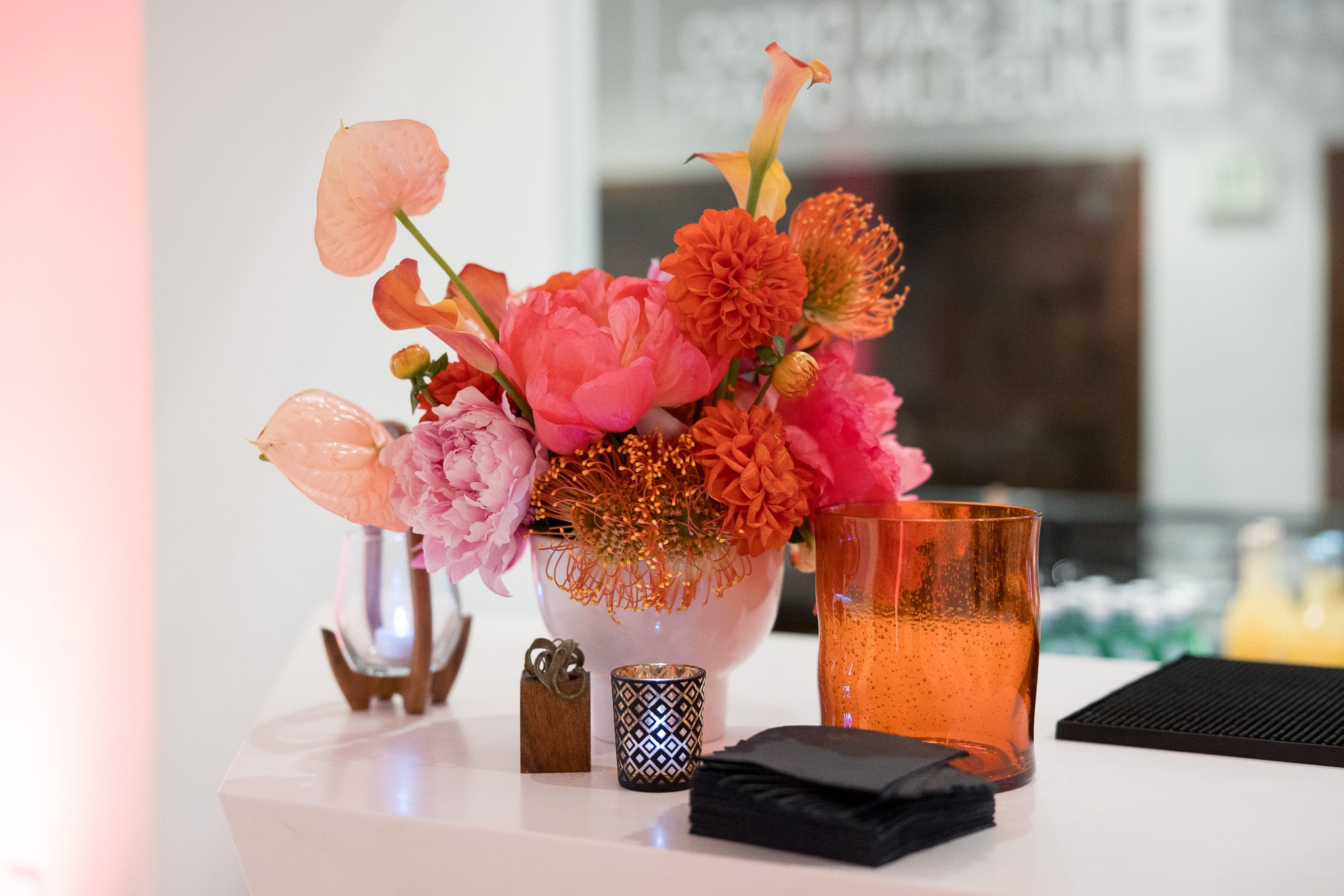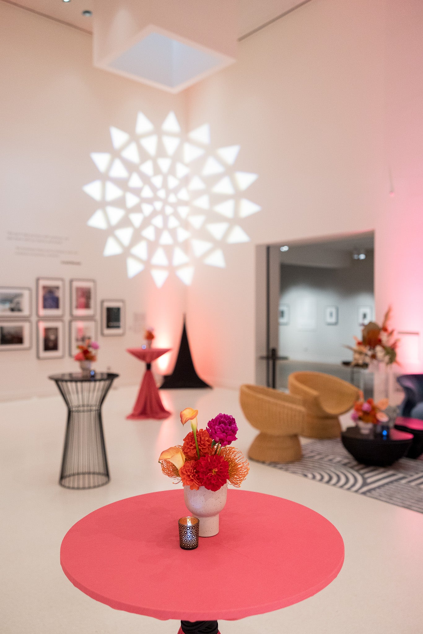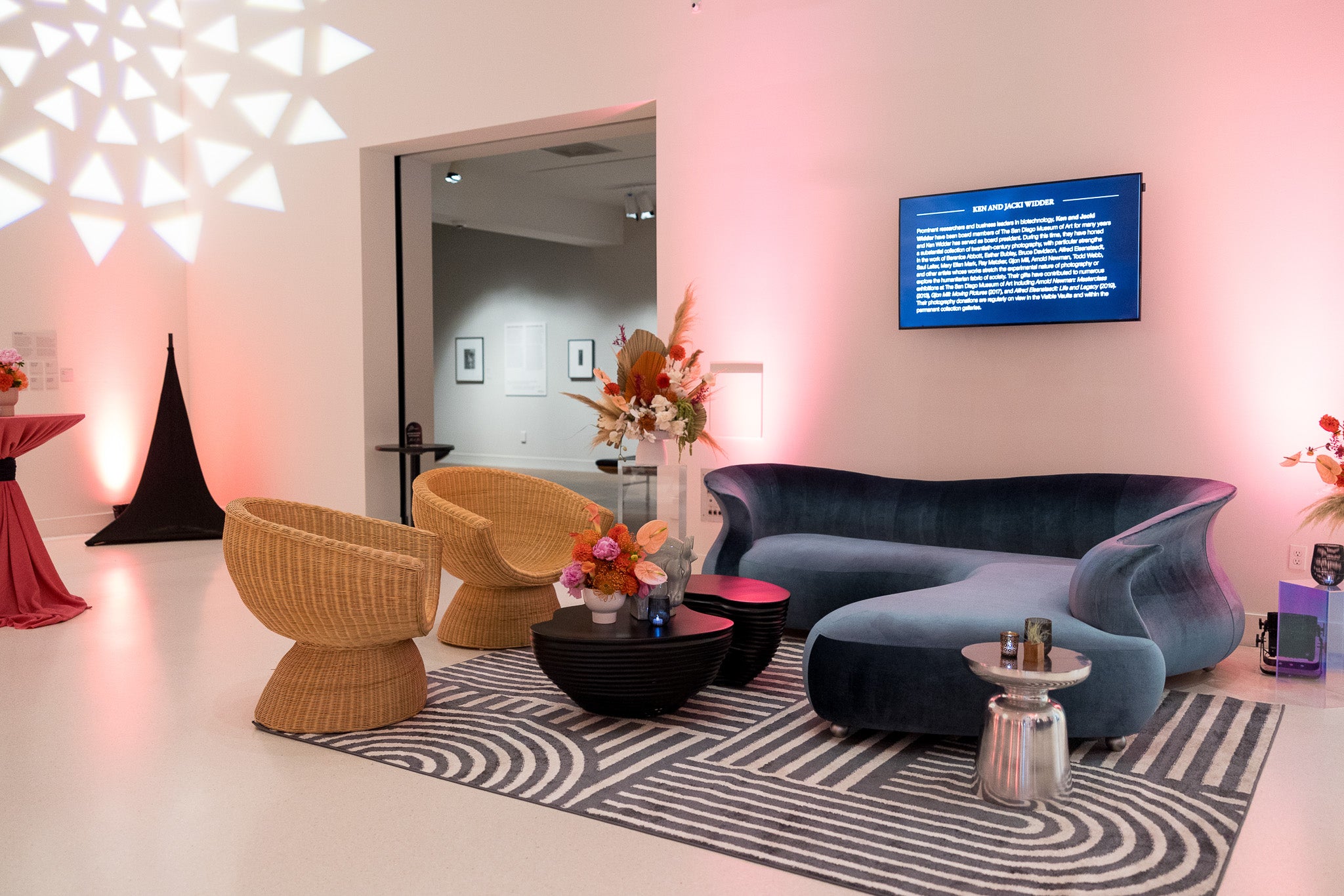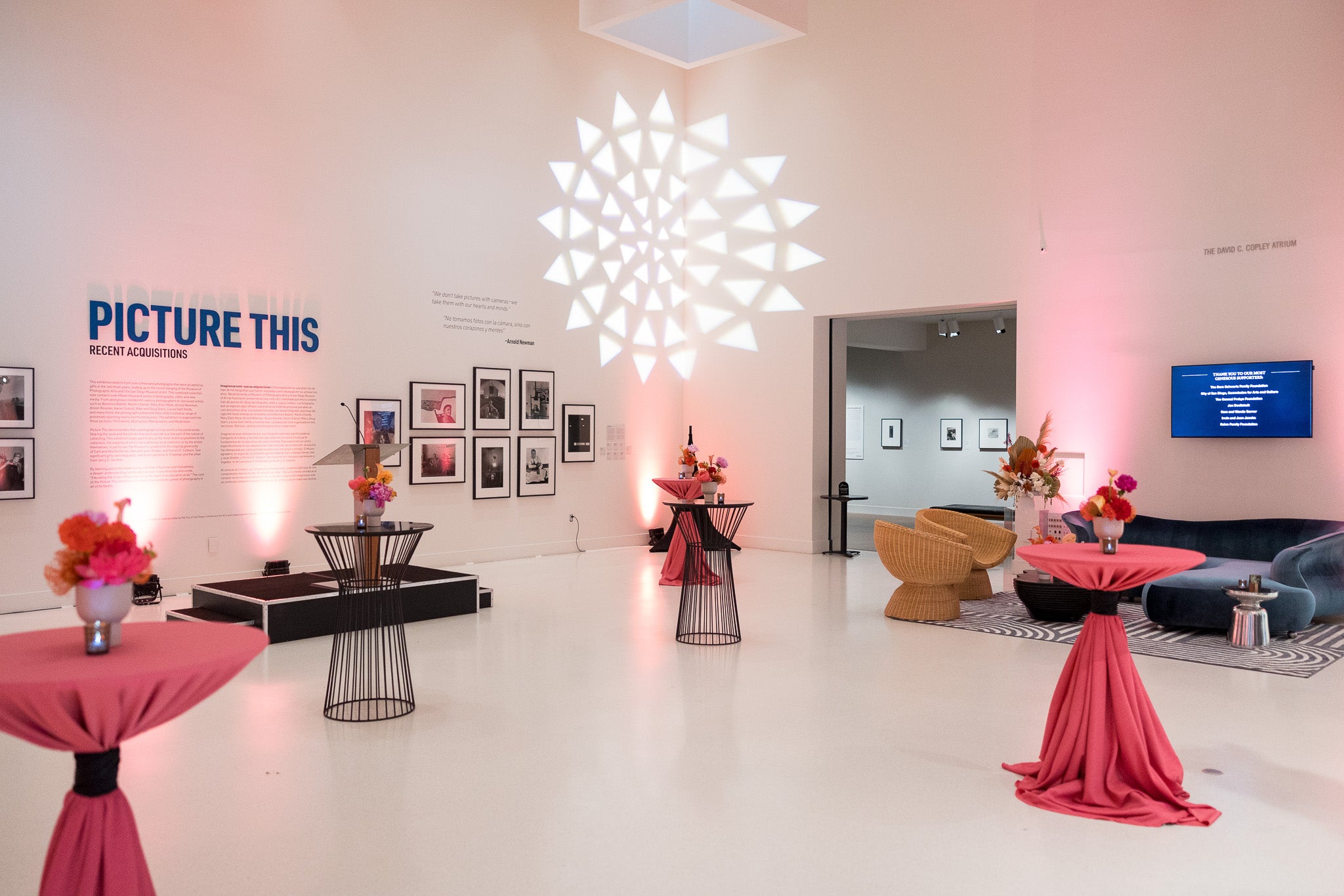 Lobby decor for the opening night reception of the Picture This exhibit on view at the Museum of Photographic Arts at the San Diego Museum of Art.