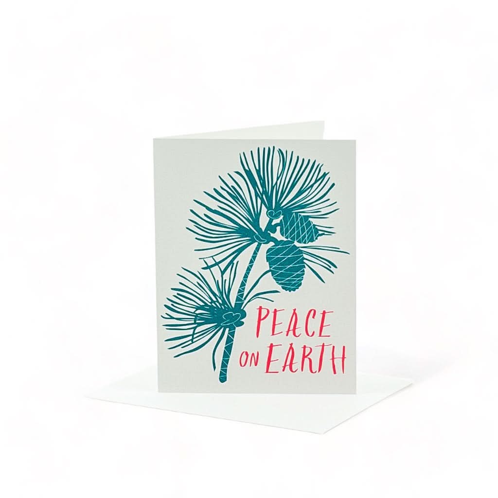 Send out good tidings with this beautiful Peace on Earth Pine Card! Featuring a cheerful grey background, a festive pine branch and a bright, red font, this card is sure to spread cheer wherever it goes. Spread some holiday cheer – and peace on earth – by sending this card today!